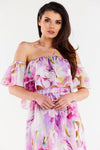 Short chiffon blouse consisting of two ruffles and sleeves, the entire neckline has a sewn-in elastic band. Polyester 100 % Size Total...