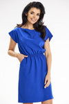 A simple mini dress with an elastic waistband for a flattering fit. It features short sleeves and a boat neckline. Additional features...