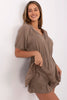 Light and feminine muslin jumpsuit in a dress cut is an ideal proposition for everyday wear. Made of breathable, soft cotton, it provides comfort even on hot days. Smooth material combined with subtle details creates a stylish yet relaxed look. The model with short puff sleeves and a sweetheart neckline beautifully highlights the neck. An elastic band sewn into the waist emphasizes the silhouette and ensures a comfortable fit. The button closure at the front adds charm and functionality to the whole. The ruffled bottom adds a girly character and lightness. Although it looks like a dress, the jumpsuit guarantees full freedom of movement, making it a perfect choice for daily activities, walks, shopping, or meetings in a summer style.