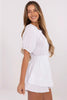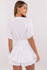 Light and feminine muslin jumpsuit with a dress cut is an ideal proposition for everyday wear. Made of breathable, soft cotton, it ensures comfortable wearing even on warm days. Smooth material combined with subtle details creates a stylish, yet effortless look. The model with short puffy sleeves and a sweetheart neckline beautifully highlights the neck. An elastic band sewn in at the waist emphasizes the silhouette and ensures a comfortable fit. The button closure at the front adds charm and functionality to the whole. The bottom finished with a ruffle adds a girly character and lightness. Although it looks like a dress, the jumpsuit guarantees full freedom of movement, making it an ideal choice for daily activities, walks, shopping, or meetings in a summer style.