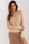 This sweater is a unique choice for anyone who likes to combine comfort with distinctive style. Its round neckline gives it a classic look that suits many occasions. The long sleeve guarantees warmth on colder days. An additional decorative element is the buttons on the cuffs, which give the sweater an elegant touch. This sweater comes in a standard length, which makes it easy to pair with a variety of pants or skirts. Its casual style makes it perfect for everyday outings, and the distinctive print adds a personal touch. It's an excellent choice for everyday wear.
