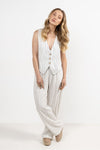 These trousers are the perfect combination of elegance and everyday comfort. Made from linen, they provide breathability and fit perfectly on the silhouette. The wide legs add freedom, while the elastic band at the waist ensures a perfect fit. The classic pattern of thin stripes makes them suitable for many styles. Pair the linen trousers with a vest or blazer made from the same fabric to create an elegant summer look.