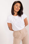 A casual blouse with a simple cut, ideal for various occasions, including work. It's made of exceptionally smooth material, mostly cotton, which makes it comfortable to wear all day long. Its front is decorated with a charming flower, which adds a delicate charm and freshness. It has a standard length, which goes well with different types of pants or skirts, allowing you to move freely. The short sleeves and round neckline give the blouse a casual feel, perfect for informal occasions, while maintaining an elegance suitable for work. This blouse is an excellent choice for those who appreciate comfort and style in their everyday outfits, while still wanting to maintain a professional appearance in the workplace.