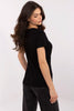 Casual blouse with a classic cut, perfect for everyday wear. Made of soft and stretchy cotton and elastane blend, it provides comfort and freedom of movement. The standard length makes it perfect for various stylizations. The model with short sleeves and a round neckline emphasizes the versatile character of the blouse. A subtle, small embroidery on the front adds a delicate accent, giving the whole a stylish finish. A great choice for any occasion!