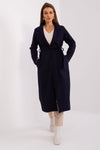 This long transitional coat is ideal for a variety of occasions, from casual to more formal. It is made of durable polyester, which ensures durability and wearing comfort. The long cut perfectly protects against the cold and wind, and the slip pockets are both practical and stylish. The coat is designed in a classic plain pattern, making it versatile and suitable for many looks. The lack of insulation makes it suitable for autumn and spring. The button fastening and tie belt adds elegance, and is suitable for both casual, work and more formal occasions. This coat, made of 100% polyester, is an excellent choice for any season.