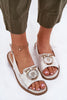 Elegant women's sandals from the S.Barski brand are a perfect choice for warm days. Made of eco leather, the model is set on a flat heel, which ensures comfort throughout the day. There is a subtle, decorative element at the front of the sandals, which adds a unique character to them. Fastened with a buckle with an adjustable strap, they allow for a perfect fit to the foot. The insole made of natural leather guarantees comfort and breathability, making the sandals ideal for extended wear.