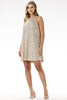 Evening sequin trapeze mini dress with halter neckline. Dazzling evening mini dress with sequins and halter neckline from the Polish brand Awama is the perfect choice for special occasions such as holidays, New Year's Eve or elegant parties. This dress combines a loose trapeze cut with sparkling sequins that give it a unique shine. The halter neckline beautifully accentuates the shoulders, adding sensuality and elegance. The dress has a lining, which increases comfort when wearing. An exceptional proposal for any occasion where you want to shine and feel special.