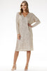 Sequined trapeze midi dress with V-neck. Discover elegance for special occasions with a sequined midi dress in a trapeze cut from the Polish brand Awama. Subtle shine and comfortable fit are the perfect combination for holidays, New Year's Eve, or elegant events. The stunning dress with a V-neck and shimmering sequins is the perfect choice for evening outings. The trapeze cut ensures freedom and elegance, while slimming the silhouette. Feel exceptional and shine at all times!