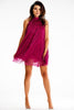 Short dress with a stand-up collar made of fine and shiny mesh and satin lining. It is a light, airy cut that...