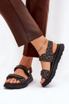 Comfortable women's sandals made of textile material that combine comfort with subtle style. Fastened with Velcro, which allows for easy and quick adjustment. A small gold detail adds elegance and a unique character. Thanks to the soft insole, they provide comfort with every step. Perfect for warm days, they go perfectly with summer dresses, skirts, and pants.
