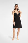 Lightweight women's strapless nightgown BLAZE is an excellent choice for women who feel comfortable in one-piece underwear for sleeping. The model reaches to mid-thigh and widens at the bottom, forming an A-shape. Thin shoulder straps allow you to adjust the length, and an elastic band creates an aesthetic cut under the bust. The deep neckline is finished with delicate lace. BLAZE nightgown in black is nightwear with a romantic character. It beautifully emphasizes the line of the neck and shoulders, and thanks to cut-outs in the front and back it also subtly exposes the back and cleavage. Pleasant to the touch fabric gently wraps the body, guaranteeing you a sense of comfort. Reach for this model if you want to feel special in the bedroom!