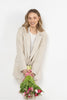 This blazer is a combination of classic and casual style. Made from lightweight linen, it offers comfort and breathability. The loose fit ensures freedom of movement, while the wide lapels and stand-up collar add elegance. The cotton lining increases wearing comfort, making this blazer an ideal choice for various occasions. Linen trousers, both wide and cigarette styles, pair well with the blazer. Combine the trousers with the linen blazer to create a stylish suit.
