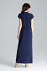 Long dress with kimono sleeves, with an elastic band at the waist. Cut at the top and bottom of the intertwined to the right side. A slit in the front adds style and elegance. Model perfect for many occasions.