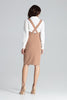 Sleeveless midi dress with fitted top. Large neckline. Open back. Fastened at the back with a covered zipper and decorative braces with press studs. Dress without pockets with lining.