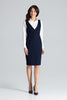 Sleeveless midi dress with fitted top. Large neckline. Open back. Fastened at the back with a covered zipper and decorative braces with press studs. Dress without pockets with lining.