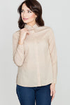 A versatile elegant shirt with a front snap button closure. It has an interesting cut-out back. Ideal for everyday as well as for work.