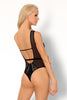Lovely black bodysuit with a bow on the front, located in the waist area on a delicate quasi-strap. The body is made of a combination of wonderfully soft tulle and lace. It is elastic, fastened both on the back and in the crotch (with snaps). Lace trim on thighs, lace cups of soft type, without underwiring, subtle charm of retro style in contemporary, very sensual edition... Order it, because it is worth it.