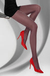 Delicate, high quality tights decorated with a subtle, slightly glossy thread woven into the whole model. Thanks to it the tights gain intriguing character. The shiny thread is very delicate, feminine and looks great on tights. This version is maroon (slightly darker in person than in the photo). Thickness 20 DEN.