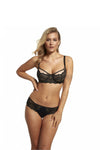 Classic yet extremely elegant bra with soft underwired cups. The cut of the bra with vertical cut, thanks to which the bust is gathered and kept in the right place. The cups are covered with elegant lace. Adjustable, non-removable straps.