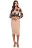 A beautiful dress consisting of two layers. The bottom is made of smooth fabric, with a heart neckline and pencil bottom is the essence of elegance. The top sewn from guipure with buffet sleeves gives it an original character. Dress is fastened with a covered zipper. This model can accompany you to many parties.