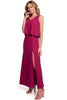 A beautifully cut dress made of flowing fabric with a double frilled top and a figure-lengthening bottom line stretching to the ground, with a long thigh-high slit. Very sensual, looks exceptional when in motion. Dress is fastened with a covered zipper, without a lining.