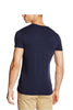 Men's short-sleeved T-shirt. The front with an interesting pattern and a contrasting pocket sewn on. Back smooth in navy blue.