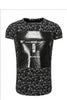 Men's short-sleeved T-shirt in black. T-shirt made of fabric with a spider web pattern. Composition: 100% cotton