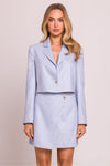 Elegant short blazer with a timeless cut, made of high-quality fabric. The classic collar gives it elegance, and the decorative heart-shaped button adds a subtle, unique accent. The model is fully lined, which ensures comfort and perfect fitting on the silhouette. It perfectly complements both elegant and casual stylizations. Designed and sewn in Poland with attention to every detail.
