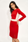 A softoffice style dress does not have to be boring at all! Just bet on a modern cut, timeless design. Thanks to the contrast embellishment, it slims the waist, emphasizes the bust and hips. On one side there is an eye-catching cutout, which further ensures freedom of movement. The dress is unlined.