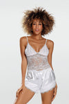 The Estera set is hot satin shorts trimmed with lace and a lace short top exposing the belly. This set of sensual...