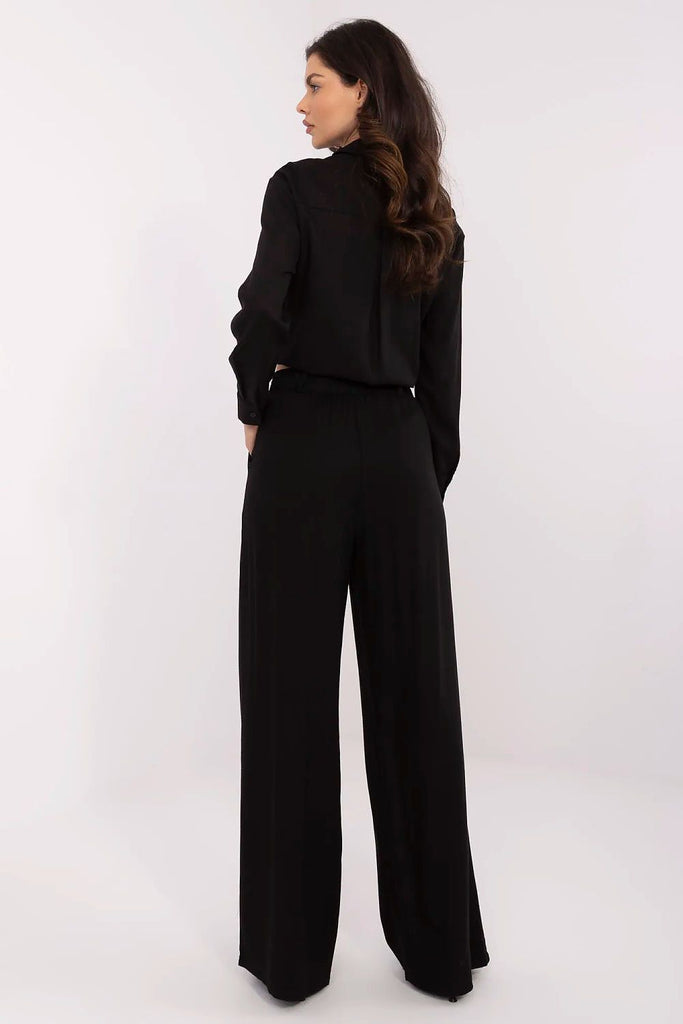 Stylish and comfortable women's palazzo pants, perfect for everyday wear. Made of a lightweight and breathable blend of viscose and linen, they provide comfort and freedom of movement. The smooth fabric gives them a universal character, while the wide legs emphasize an elegant yet casual style. The high waist visually lengthens the silhouette, and the elastic band sewn into the back ensures a perfect fit and comfort. Side pockets add practicality, and the lack of fastening makes the pants extremely comfortable and easy to wear. This is an excellent choice for everyday outfits, combining lightness and timeless elegance.
