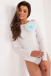 Elegant bodysuits are a combination of style and comfort, providing the perfect base for a variety of styling. Made of high quality cotton, they provide comfort of wearing and softness of the material, making them an ideal choice for many occasions. The dominant pattern is a plain surface, which gives the bodysuit versatility and elegance. The long sleeve and round neckline create a classic cut, ideal for wearing both solo and under a layer of other clothes. A decorative flower placed on the front gives the bodysuit a unique charm and subtlety. This delicate decoration adds femininity, while being an interesting decorative element that catches the eye. Elegant bodysuit is an excellent choice for women wishing to combine style with comfort, to create subtle yet striking combinations. Its versatility makes it can be worn for different occasions, while emphasizing the individual taste and elegance of the woman wearing it.