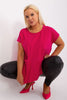 Plus size blouse with short sleeves and round neckline. Slip pockets on the front, slits on the sides. Cotton 90 % Spandex...