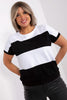 Plus size blouse with short sleeves and round neckline. The blouse is made of fabric with wide stripes. Cotton 90 % Spandex...