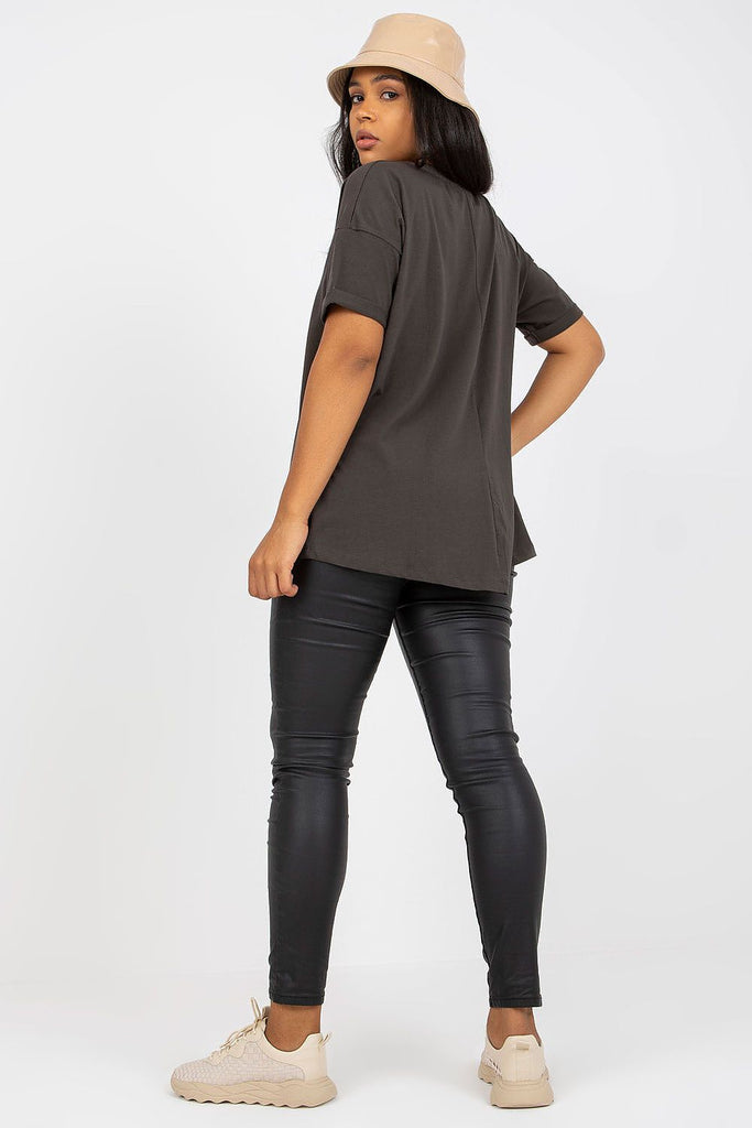 T-shirt with short sleeves and round neckline. Plus size shirt with asymmetrical bottom. Cotton 90 % Spandex 10 % Size Total length...