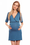 Maternity nightgown with contrasting lace. Envelope neckline to facilitate breastfeeding. Shirt with short sleeves. Can also be worn after pregnancy.