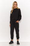 The casual women's sweatshirt set is the perfect combination of comfort and style. The sweatshirt, which you put on over your head, has long sleeves and a round neckline, which works well on colder days. The ribbed cuffs at the ends of the sleeves and at the bottom of the sweatshirt provide a practical element. The front of the sweatshirt features subtle embroidery with the word Macadamia, which adds a touch of elegance. The long-leg pants are practical thanks to their comfortable cut and side pockets. The regular leg is finished with a standard drawstring hem. This set, available in sand, chocolate and black, is an ideal choice for everyday wear as well as for work. It adds a feminine touch and ensures comfort all day long.