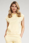 Cotton sleeveless sweatshirt with a hood, a large pocket sewn on the front. Sweatshirt with a loose cut. Cotton 95 % Spandex...