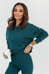 A short sweatshirt with a slightly oversize cut is the perfect choice for all fans of comfy style! Round neckline, lowered shoulder line and decorative stitching, and small slits on the sides are the distinguishing features of our Lamia sweatshirt. Wear it with the dedicated Lamia pants and create a unique set! Sweatshirt designed and sewn in Poland. Sleeve length measured from the neck.