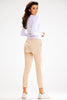 Fitted pants, adjustable at the waist with elastic and binding. On the sides slip pockets.