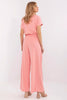 Stylish palazzo-style sweatpants, combining comfort and elegance in everyday outfits. Made of a soft blend of viscose, polyester, and elastane, they provide comfort and freedom of movement. Smooth fabric and wide legs give them a trendy, slightly oversized character. The high waist with an elastic band ensures a perfect fit to the silhouette, and decorative pleats on the front add a unique expression. A model without fastening, equipped with practical side pockets. Perfect for everyday wear, both for sporty and more elegant combinations.