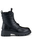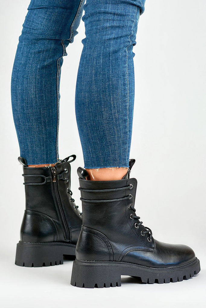 These black boots are the perfect choice for fall and winter, combining style and comfort. Made of eco leather, their upper is 15 cm, providing extra protection on colder days. The interior of the boots is lined with eco fur, making them warm and comfortable. The boots have a platform height of 4.5 cm, which gives a higher level of comfort and adds a few centimeters of height. A lace-up closure and an additional zipper make them easy to put on. The round toe adds to their classic look. These are shoes that are both stylish and practical, perfect for winter walks or evening outings.