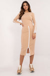 Women's striped fabric set, consisting of a blouse and skirt, is a great option for everyday styling and work. Made from a combination of cotton and polyester, it provides comfort and durability. The smooth material emphasizes the simplicity and elegance of the set, while the contrasting stripe on the sleeves of the blouse and the front of the skirt adds a modern touch. The long-sleeved blouse with a round neckline pairs perfectly with the knee-length skirt, creating a casual look that will work in many situations.