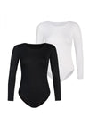 Classic women's body made of high-quality viscose, pleasant to the touch and fitted to the female body. The women's body has long sleeves that are fitted to the wrist and do not cling to the shoulders. The fabric is not see-through, hides the body and does not bulge at the elbows. The neckline is semi-circular and elegantly reveals the breasts. In the crotch area, there is a three-step snap fastening that allows for individual adjustment of length and fitting to the body shape if needed. A thin elastic band is applied in the leg area, which does not pinch and comfortably sits on the leg. This body can be worn daily with pants or skirts. It can also be worn under tight clothing to shape the silhouette. Every woman should have classic viscose bodies like this in her wardrobe. The package includes bodies in white and black.