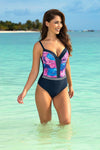 One-piece swimsuit in interesting colors. Padded bra with deep comfortable cups. Lined swimsuit with adjustable straps.