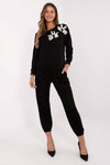 Comfortable and stylish women's set consisting of a sweatshirt and pants, perfect for everyday wear. Made of a pleasant to the touch blend of viscose, cotton, and elastane, it ensures comfort and freedom of movement. The smooth material gives it a minimalist character, and the subtle flower-shaped patch on the front adds a feminine charm. Pants with a high waist and side slip pockets guarantee comfort, and the cuffs on the legs emphasize the sporty style. The loose-fitting sweatshirt perfectly complements the whole, creating a fashionable and comfortable set. A great choice for everyday casual styling!