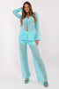 Stylish and comfortable openwork women's set is a perfect choice for everyday wear for women who appreciate fashionable look and comfort. Made of a breathable blend of cotton, elastane, and polyester, it provides comfort and perfect fit. The shirt with long sleeves and a tie at the front instead of buttons adds lightness and subtle elegance to the styling. The straight-cut pants with a high waistline slim the silhouette, and the side slip pockets add functionality. Additionally, the upper part of the pants is lined, ensuring comfort when worn. The openwork pattern gives the whole outfit a unique, feminine character, fitting perfectly into casual styling. The set will work great in both everyday outfits and light, summer looks.
