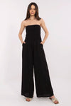 Stylish and comfortable jumpsuit perfect for everyday outings. Made from breathable and soft viscose, it guarantees all-day comfort. The long, loose fit with wide legs and Spanish neckline creates a modern, relaxed look. The smooth fabric emphasizes the minimalist character of the model, and the gathering at the top adds a subtle lightness. The absence of a fastening makes it easy to put on quickly, and the side slanted pockets increase functionality. An ideal choice for women who value both style and comfort.