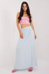 Casual maxi skirt that can also be worn as a dress, ideal for everyday wear. Made of smooth, solid material, dominated by viscose, it provides comfort and breathability. The skirt has a lining, which adds volume and elegance. Decorative creases give it a unique character and style. Thanks to its versatile cut, it can be styled in various ways, both as a skirt and a dress. It is a versatile closet item, ideal for everyday outings, combining comfort with a fashionable look.