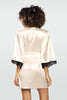 A lovely robe made of a combination of satin in a beautiful champagne shade and black, sensually transparent lace. It has a...